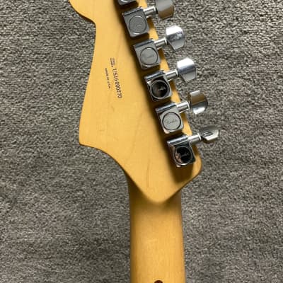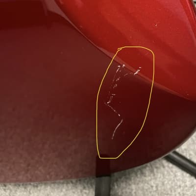 - Large scratch on back of body (see photos), otherwise very clean; protective covers still on pickguard and vibrato arm-tip